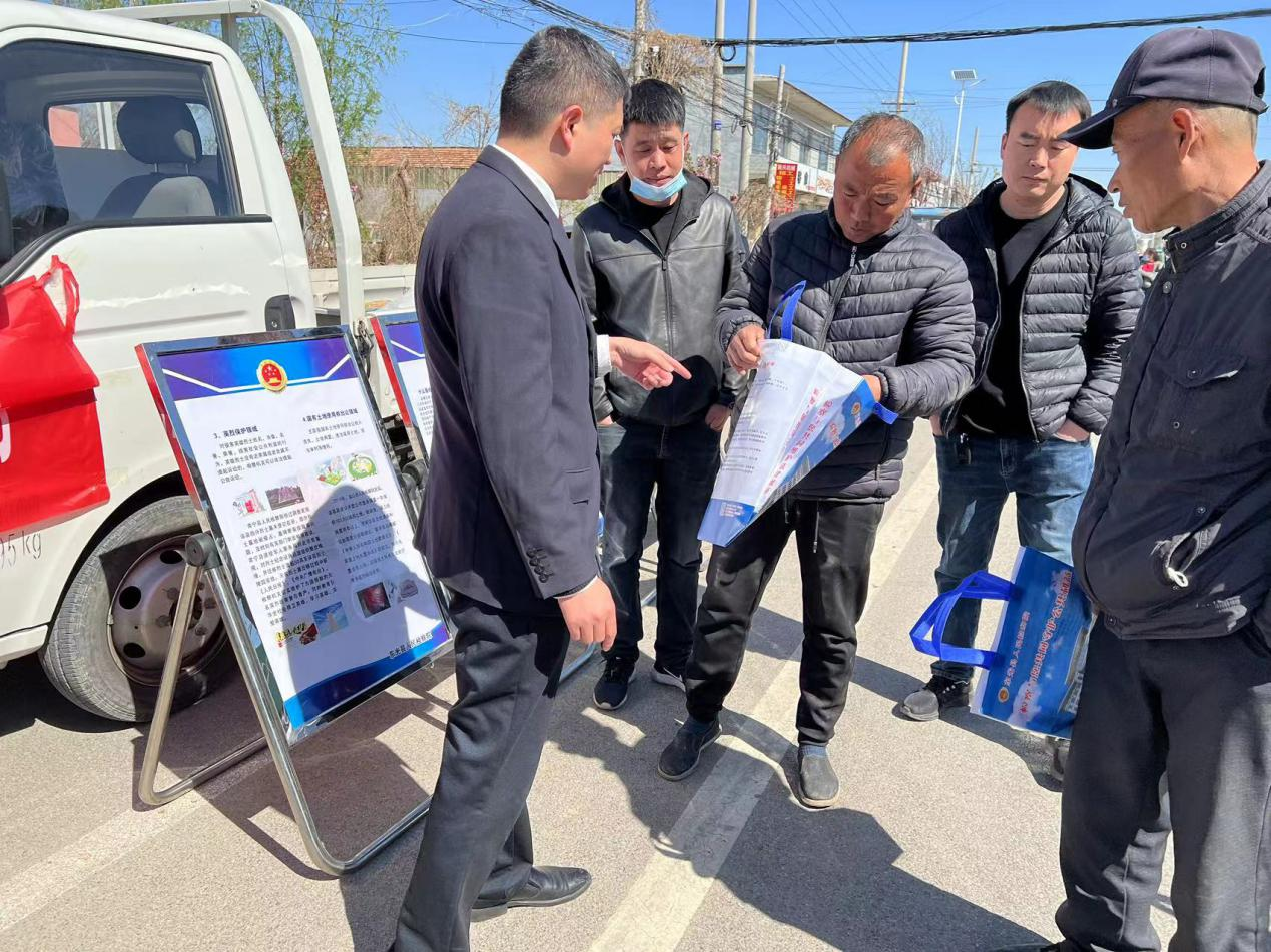 4月7日上午,东光县检察院第二检察部全体干警到龙王李镇集市开展宣传活动,检察干警通过悬挂宣传横幅、发放普法宣传资料、提供法律咨询等以全方位、多角度方式,向过往行人普及检察机关提起公益诉讼的法律依据以及职能范围,呼吁群众合力保护生态环境,在发现生态环境和资源保护等受到侵害的线索时,可向检察机关反映,共同维护国家利益和社会公共利益。