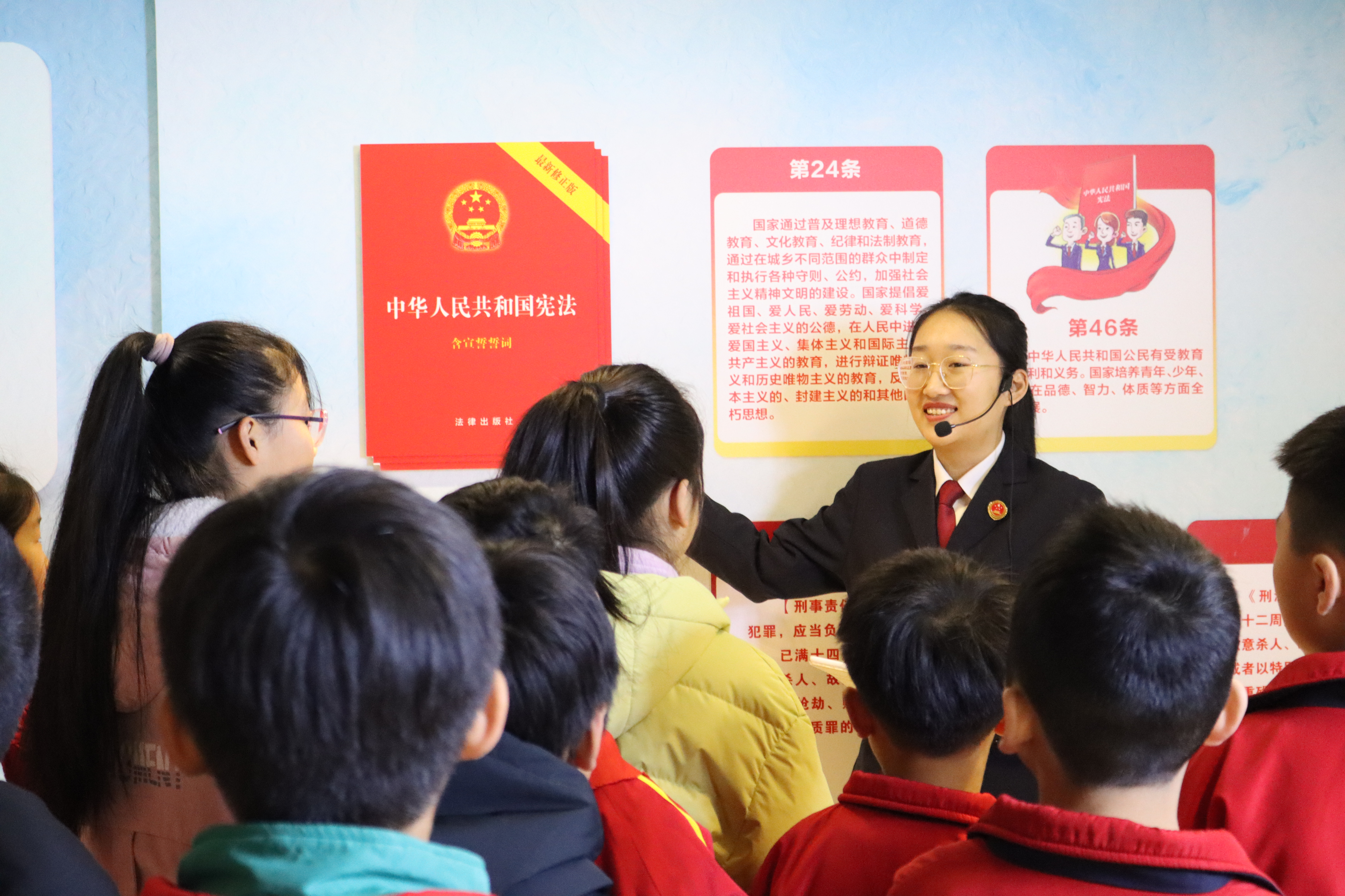 在第十一个国家宪法日到来之际,东光县人民检察院开展了以宪法学习为主题的法治研学活动,邀请了30余名学生和家长代表走进检察院青少年法治教育基地参观学习。活动中,检察干警带领大家走进宪法主题法治展厅、“知新法治读书角”、法治小课堂、法治小剧场,多形式为同学们讲解了什么是宪法,宪法的地位和意义以及如何运用宪法等相关知识,让大家感受到法律的威严和温暖,给同学们带来一场“干货满满”的宪法学习法治之旅。现场互动频繁,气氛十分活跃。